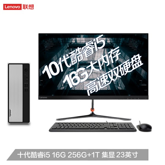 联想(Lenovo)天逸510S 酷睿版英特尔酷睿i5 台式机电脑整机(i5-10400 16G 1T+256G SSD wifi win10 )23英寸