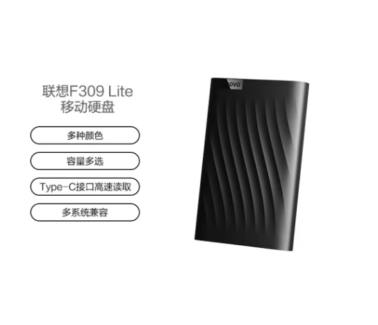 联想/LENOVO F309 移动硬盘 2TBType-C 机械硬盘 高速传输便携小巧稳定耐用 深空黑