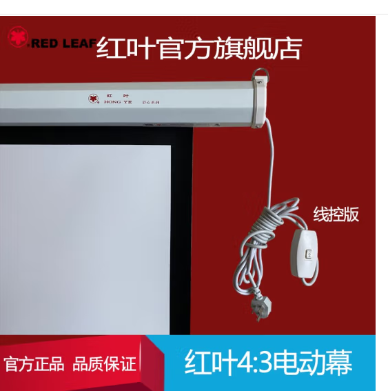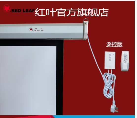 红叶 100C 投影幕 电动投影仪幕布1004:3白塑玻珠遥控电动幕3D4K高清办公幕 玻珠幕