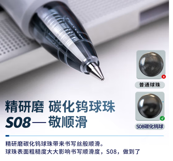 得力/deli S08 书写用笔类用具 臻顺滑中性笔签字笔 0.5mm子弹头按动笔 黑色 12支/盒