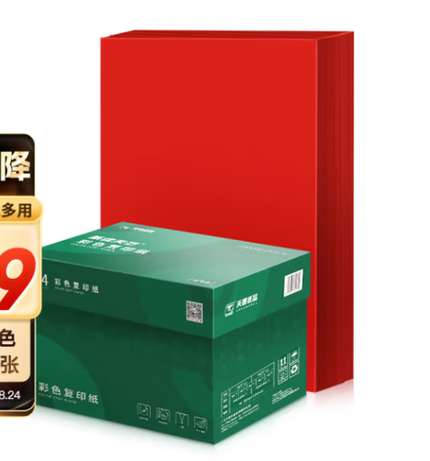 天章/TANGO A4 80g 复印纸 500页彩色复印纸 大红色