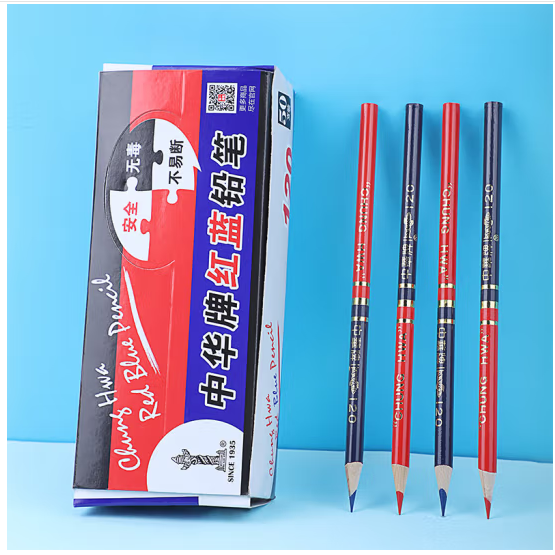 中华 120 书写用笔类用具 红蓝 红蓝铅笔设计绘图施工放线 特种铅笔圆杆50支/盒