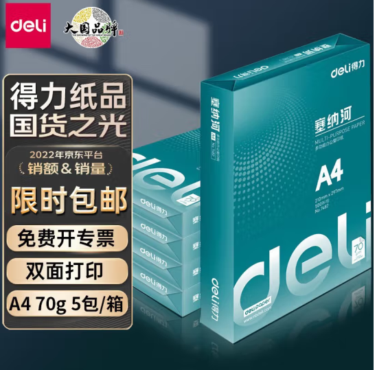 得力 7480 复印纸A4/70g塞纳河多功能双面打印纸木浆纸传真接收纸张光滑打印顺畅商务办公用品