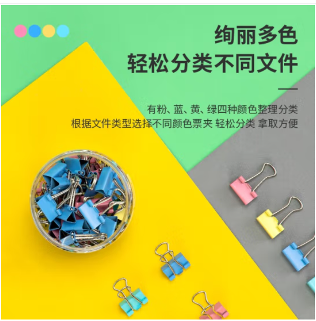 得力/deli 8556 长尾夹60只15mm彩色长尾夹票夹 6#小号金属燕尾夹