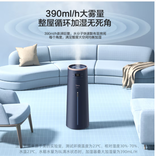 美的/Midea SCK-1LA80W 加湿器 卧室婴儿大容量办公桌面家用落地 京东小家智能生态 迷你低噪空气加湿净化礼物