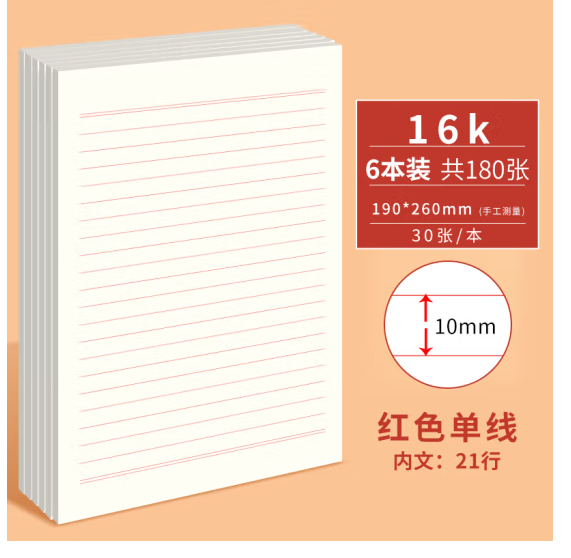 维克多利/ViKKO16K 薄本册30张单线信纸入党红格文稿纸申请专用稿纸大学作文纸草稿纸党员学习笔记本信签纸
