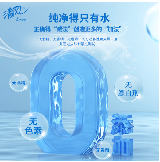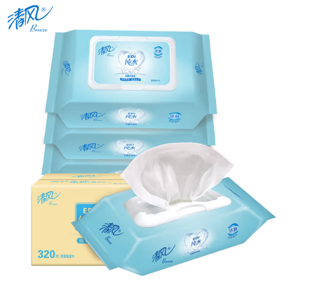清风 80P 湿巾/手帕纸 湿纸巾 EDI纯水湿巾 80片*4包 不含酒精 手口可用